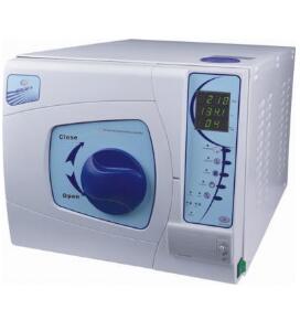 1. 開閉が簡単・確実なワンタッチドア方式です。滅菌温度を選択してキーを押すだけで、注水→滅菌→排水→乾燥と自動処理します。